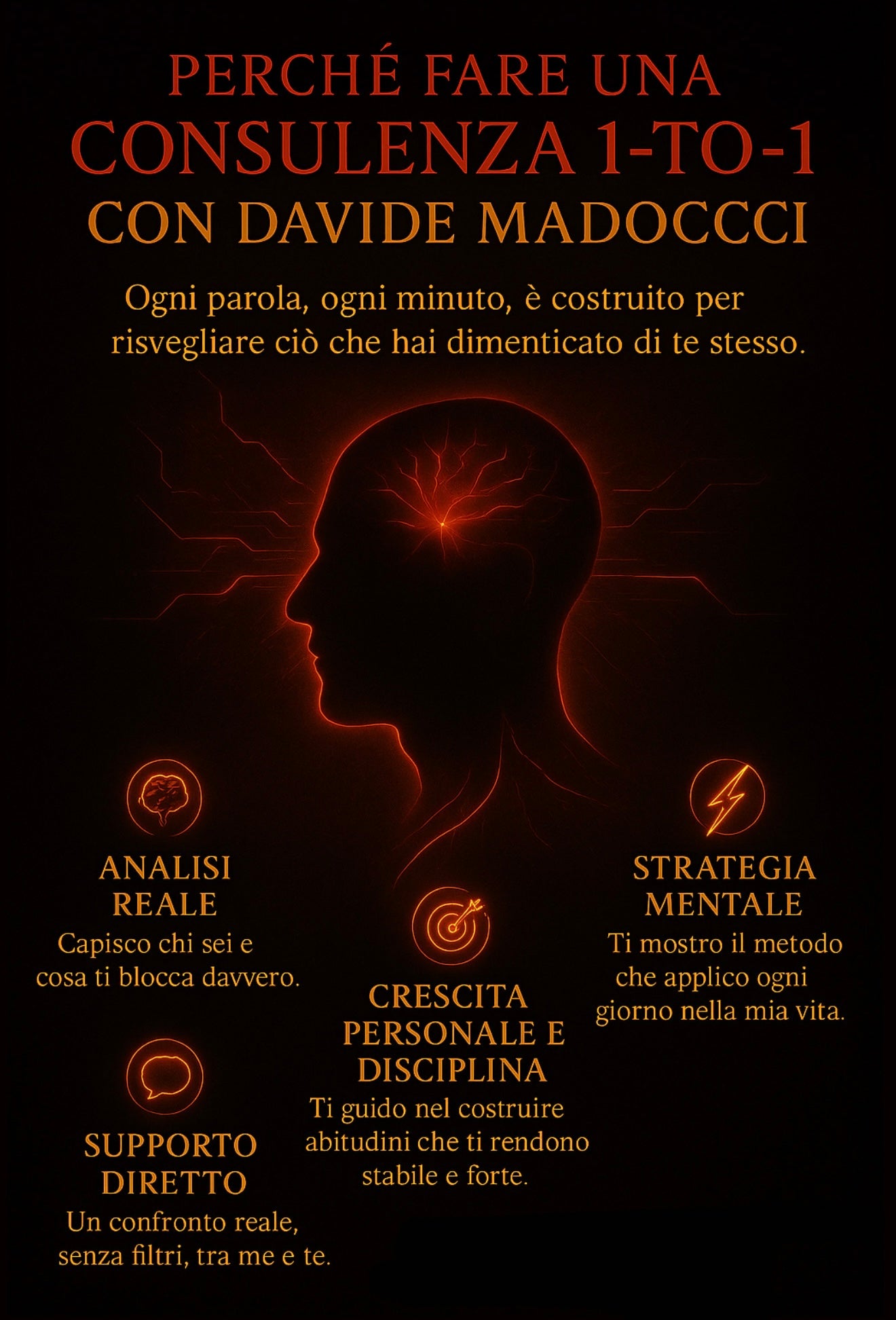 Non teoria, ma confronto diretto. Ti aiuto a costruire forza mentale e stabilità emotiva.